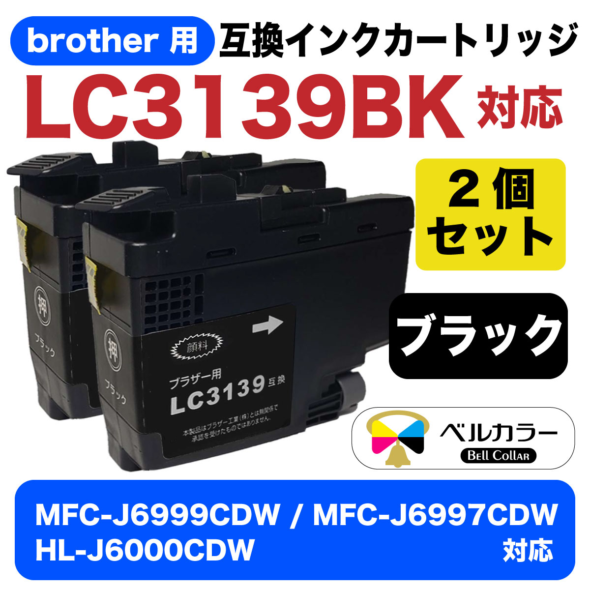 LC3139BK ブラザー BROTHER MFC-J6999CDW / MFC-J6997CDWなど 対応 互換 インクカートリッジ 顔料ブラック2個セット 3年保証 ベルカラー製