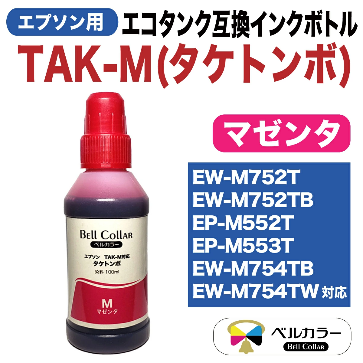 タケトンボ TAK XL エプソン Epson EW-M752T / EW-M752TBなど 対応 互換 インクボトル 100ml 単品 3年保証 ベルカラー製