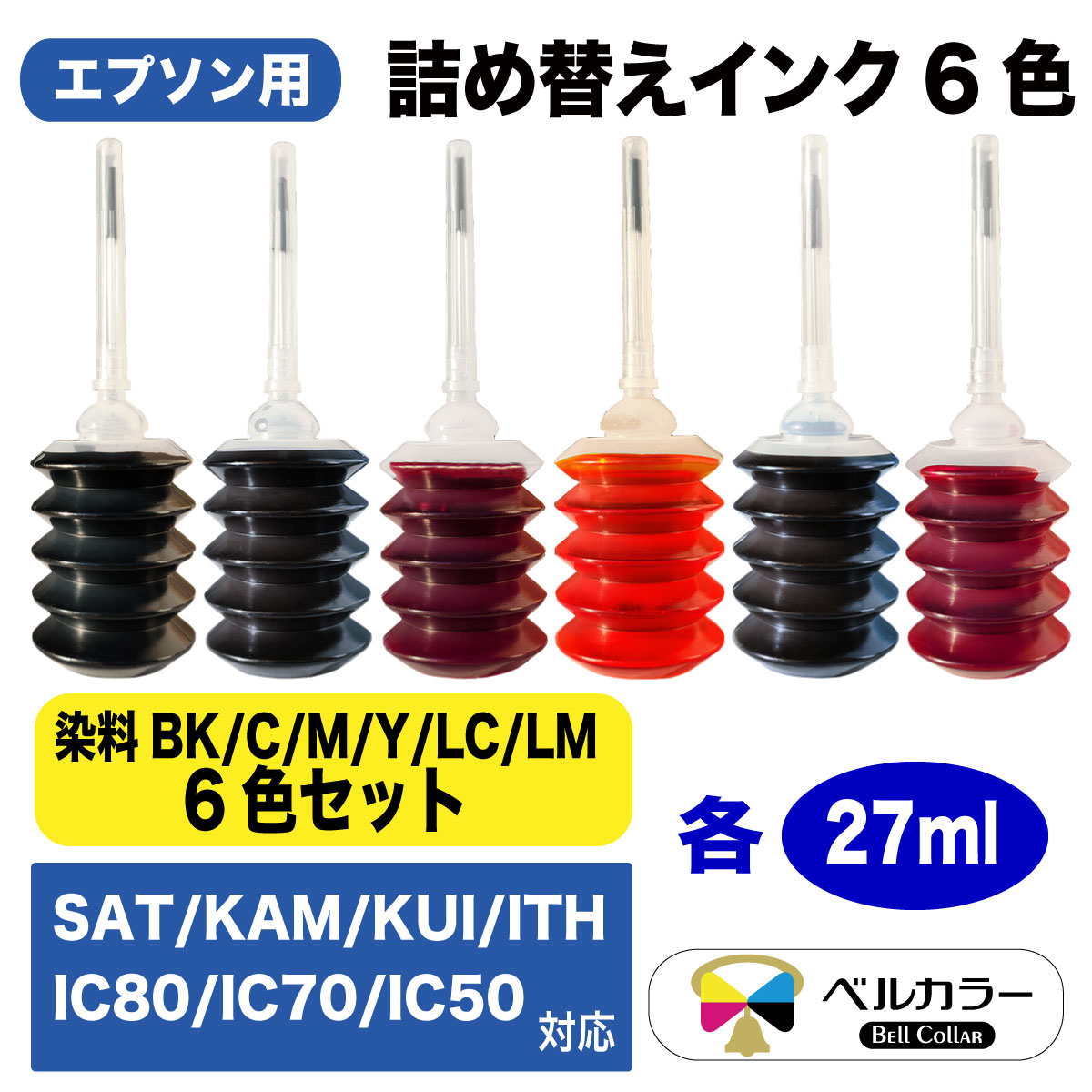 SAT / KAM / KUI / ITH / IC エプソン Epson EP-712A / EP-713Aなど 対応 互換 詰め替えインクボトル 27ml 6色セット 3年保証 ベルカラー製
