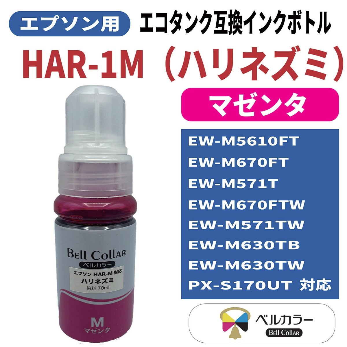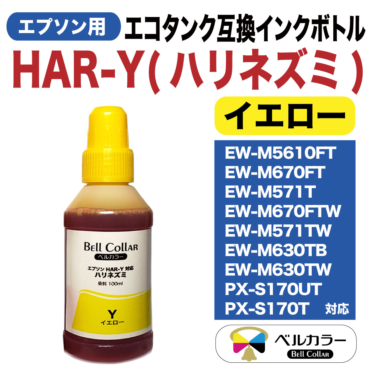 エプソン HAR(ハリネズミ)対応のエコタンク互換インクボトルのカラー単品です。
