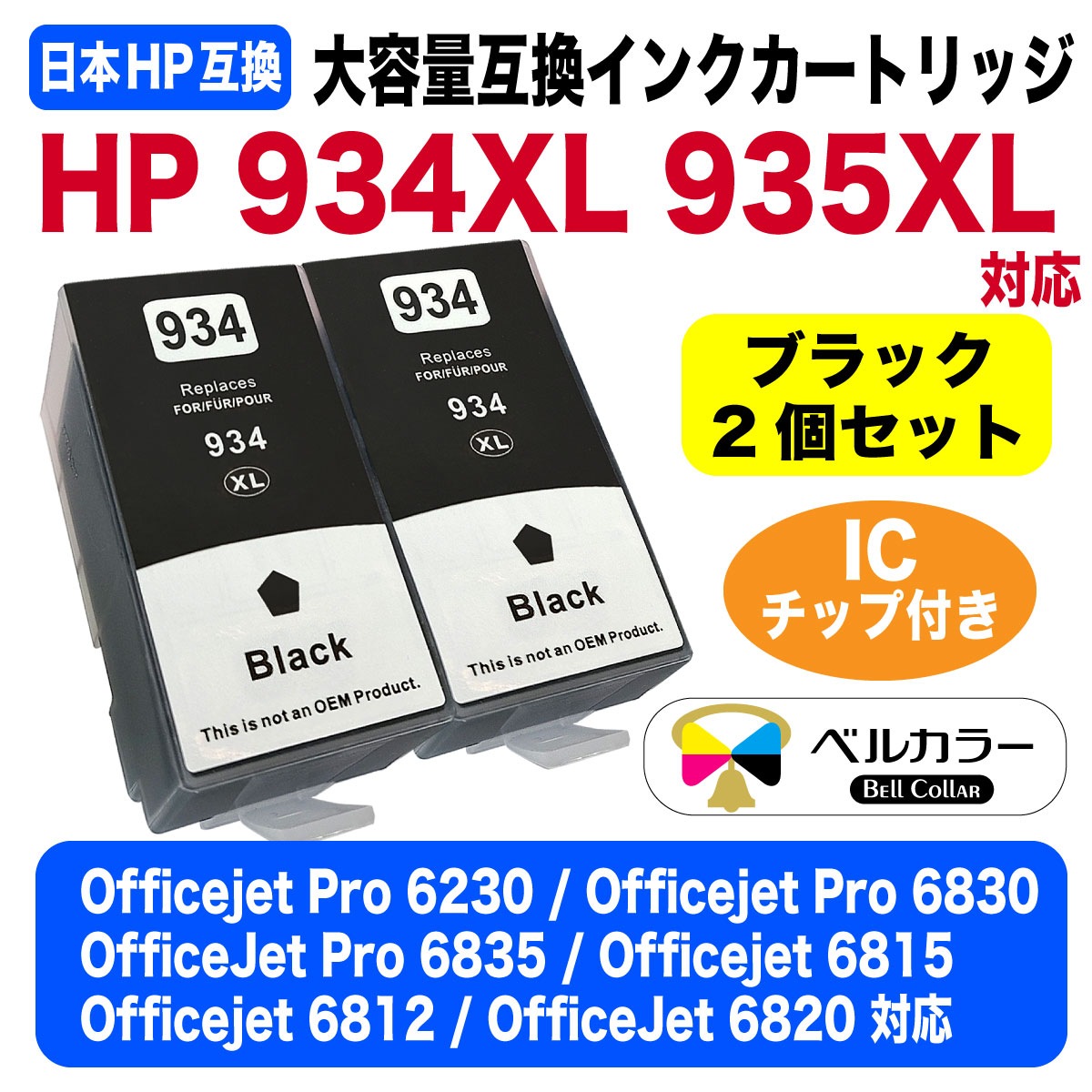HP 934XL 935XL XL ヒューレット・パッカード HP Officejet Pro 6230 大容量 互換インクカートリッジ 染料ブラック 2個セット 3年保証 ベルカラー製