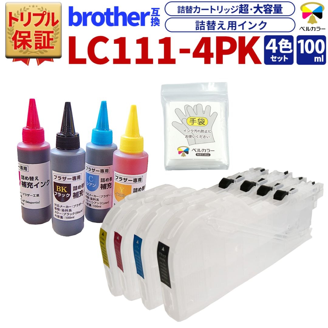 ブラザー brother互換 LC111 対応 大容量 カートリッジ L + 詰め替え インク セット 純正比 黒約6.2倍:カラー約10倍 3年保証