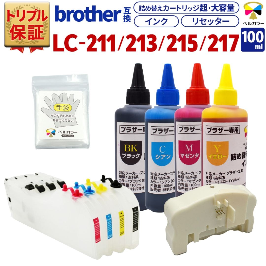 LC211 XL ブラザー BROTHER DCP-J562N / DCP-J567Nなど 対応 互換カートリッジ 詰め替えインク 4色セット 純正比 黒約6.2倍/カラー約10倍