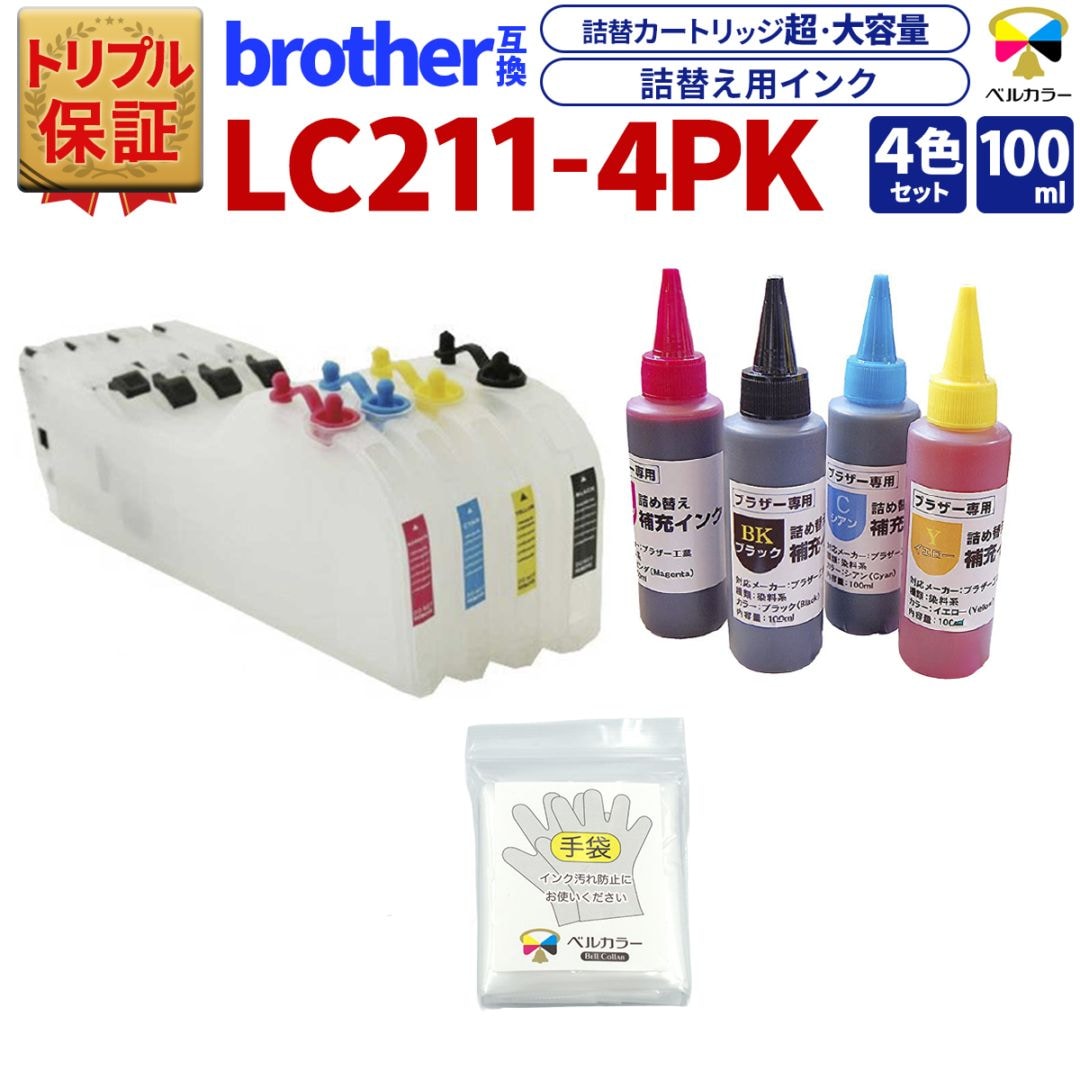 LC211 XL ブラザー BROTHER DCP-J562N / DCP-J567Nなど 対応 互換カートリッジ 詰め替えインク 4色セット 純正比 黒約6.2倍/カラー約10倍