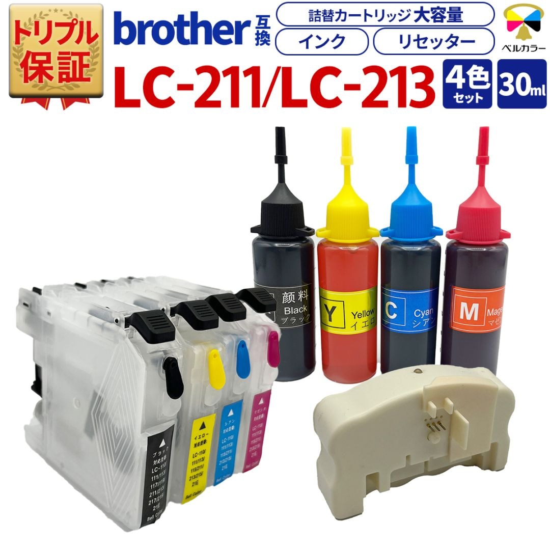 LC211 XL ブラザー BROTHER DCP-J562N / DCP-J567Nなど 対応 互換カートリッジ 詰め替えインク 4色セット 純正比 黒1.8倍/カラー3倍