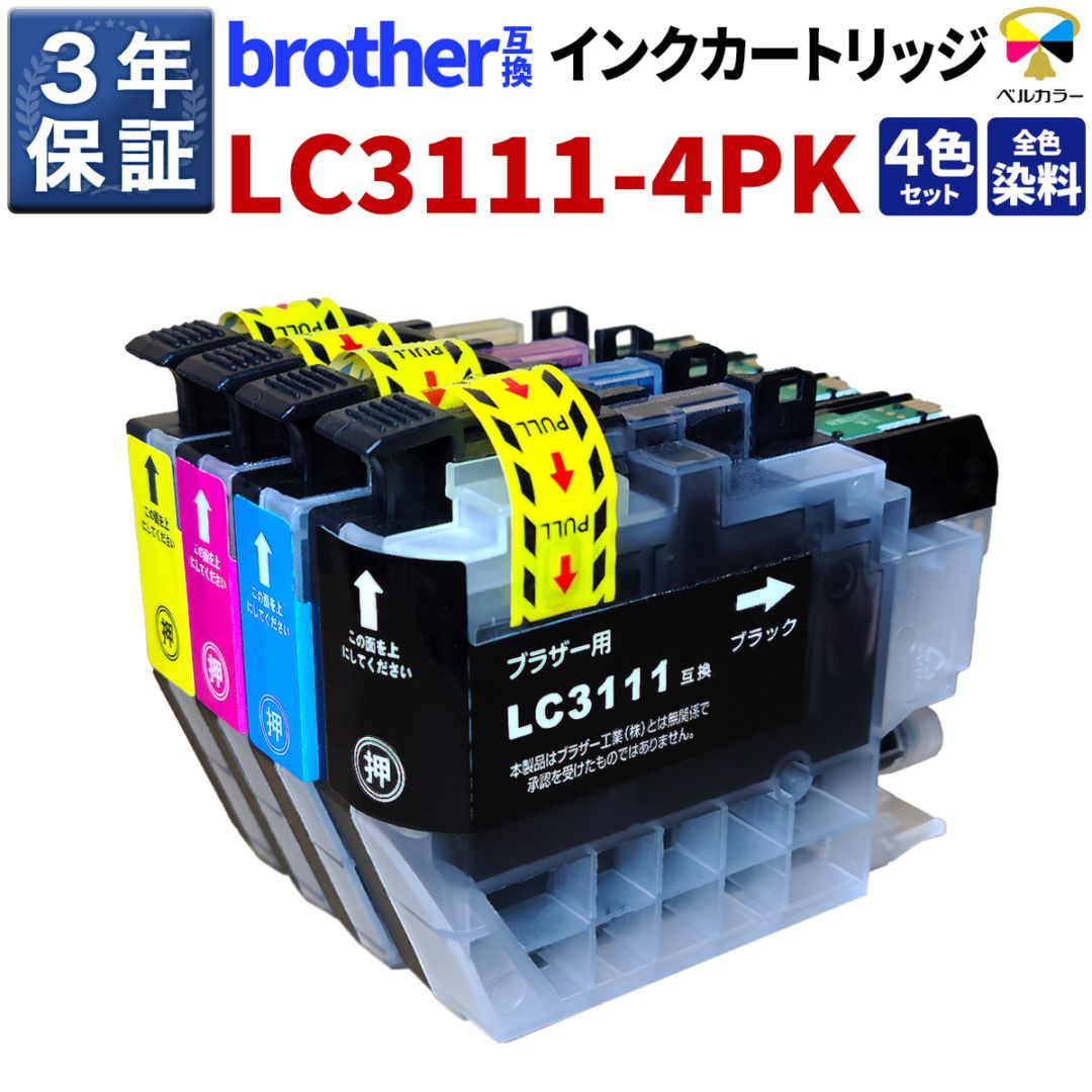 LC3111 ブラザー BROTHER DCP-J987N-W / DCP-J982N-B/Wなど 対応 互換インクカートリッジ 4色セット PGBK/C/M/Y 各1個 3年保証 ベルカラー製