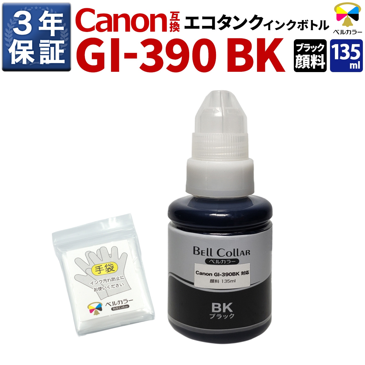 GI-390 キヤノン Canon G3310 / G1310 顔料ブラック 互換インクボトル 135mlボトル 1本 3年保証 ベルカラー製