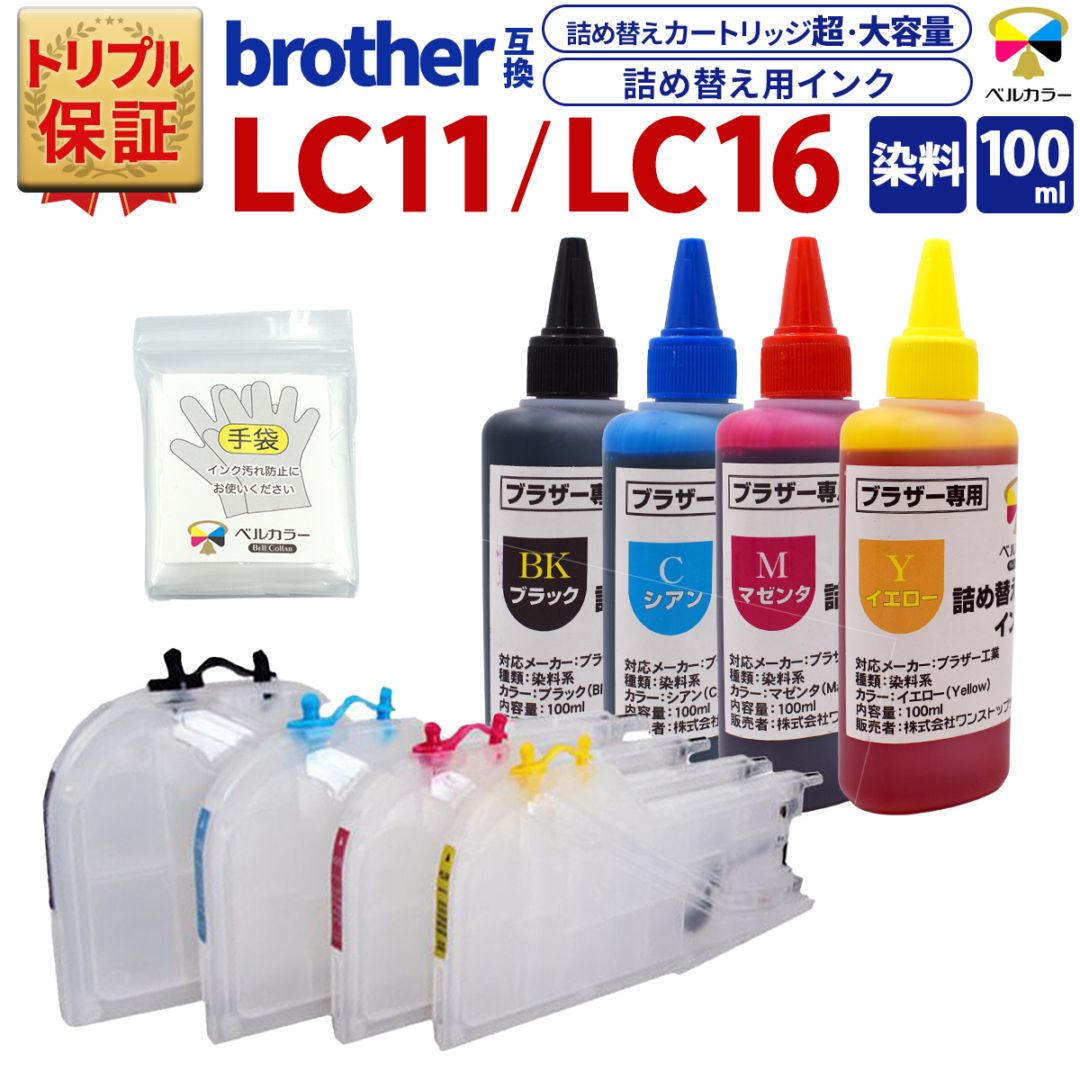 ブラザー brother互換 LC11-4PK / LC16-4PK 詰め替えカートリッジ 大容量 L 互換 100mlインクセット 純正比 黒約4倍/カラー約8.3倍