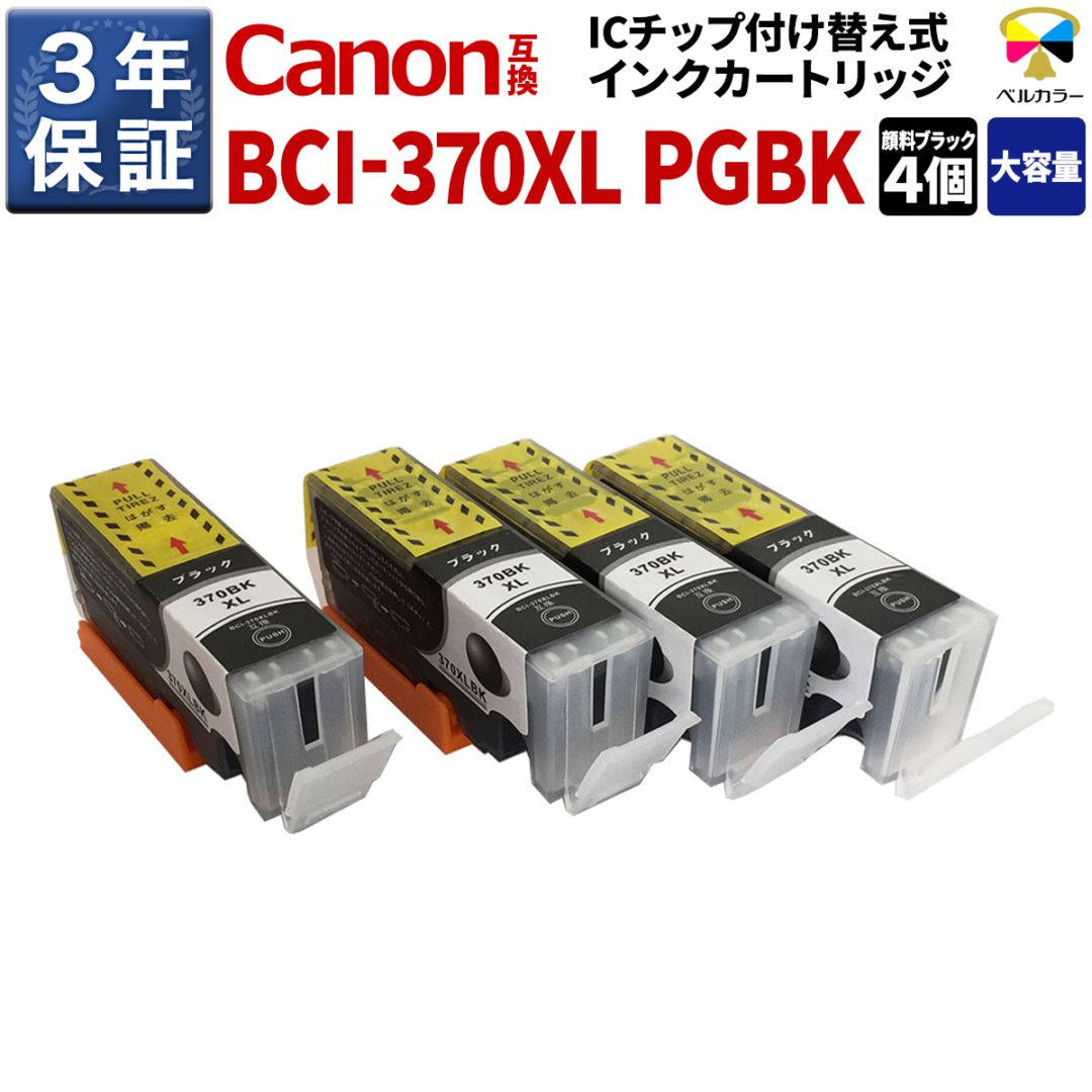 BCI-370 キヤノン Canon TS9030 / TS8030など 対応 顔料ブラック ICチップ付け替え式 互換インク カートリッジ 4色セット 3年保証 ベルカラー製