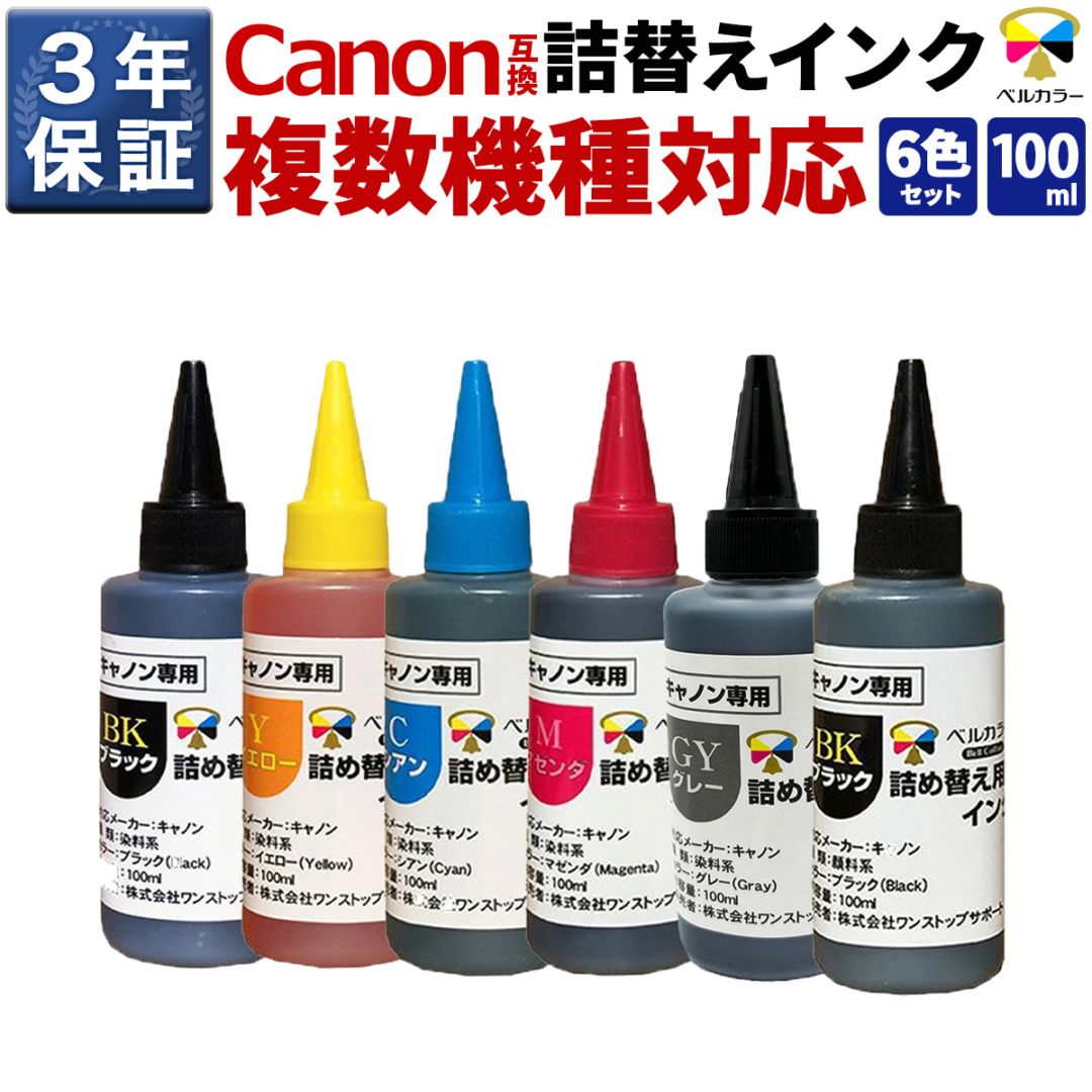 BCI-330 / BCI-370 / BCI-380 キヤノン Canon PIXUS TS9030 / TS8730など 対応 詰め替え用互換インク 100ml 6色セット ベルカラー製