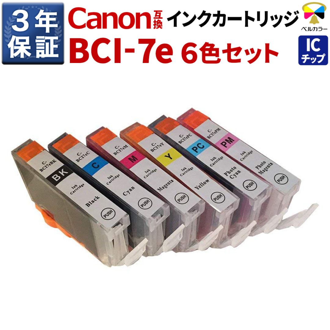 BCI-7e キヤノン Canon MP970 / MP960など 対応 互換インク カートリッジ 6色セット 3年保証 ベルカラー製