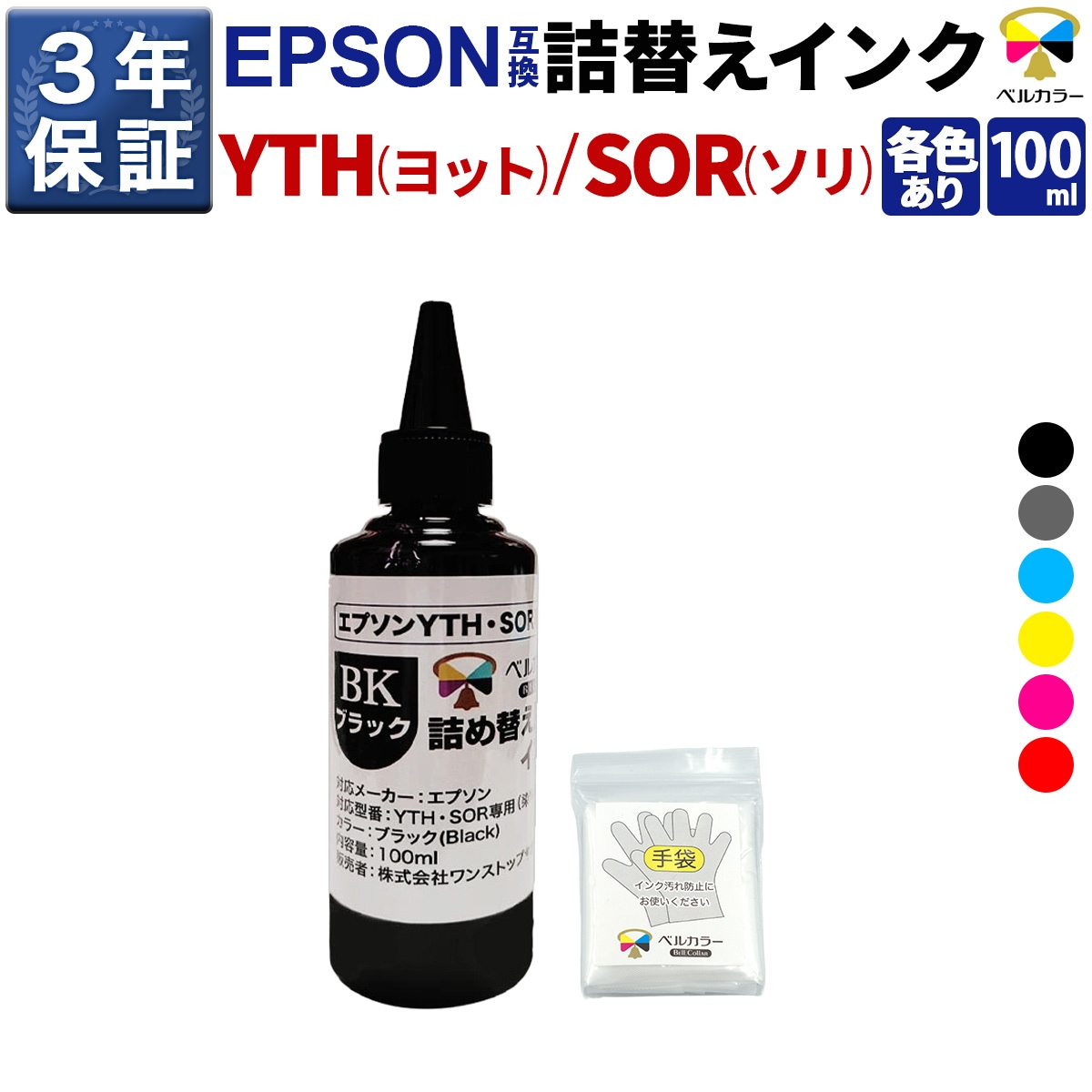 エプソン 互換 YTH ヨット / SOR ソリ 互換 詰め替えインク 100ml 単品 (ブラック/シアン/マゼンタ/イエロー/グレー/レッド)