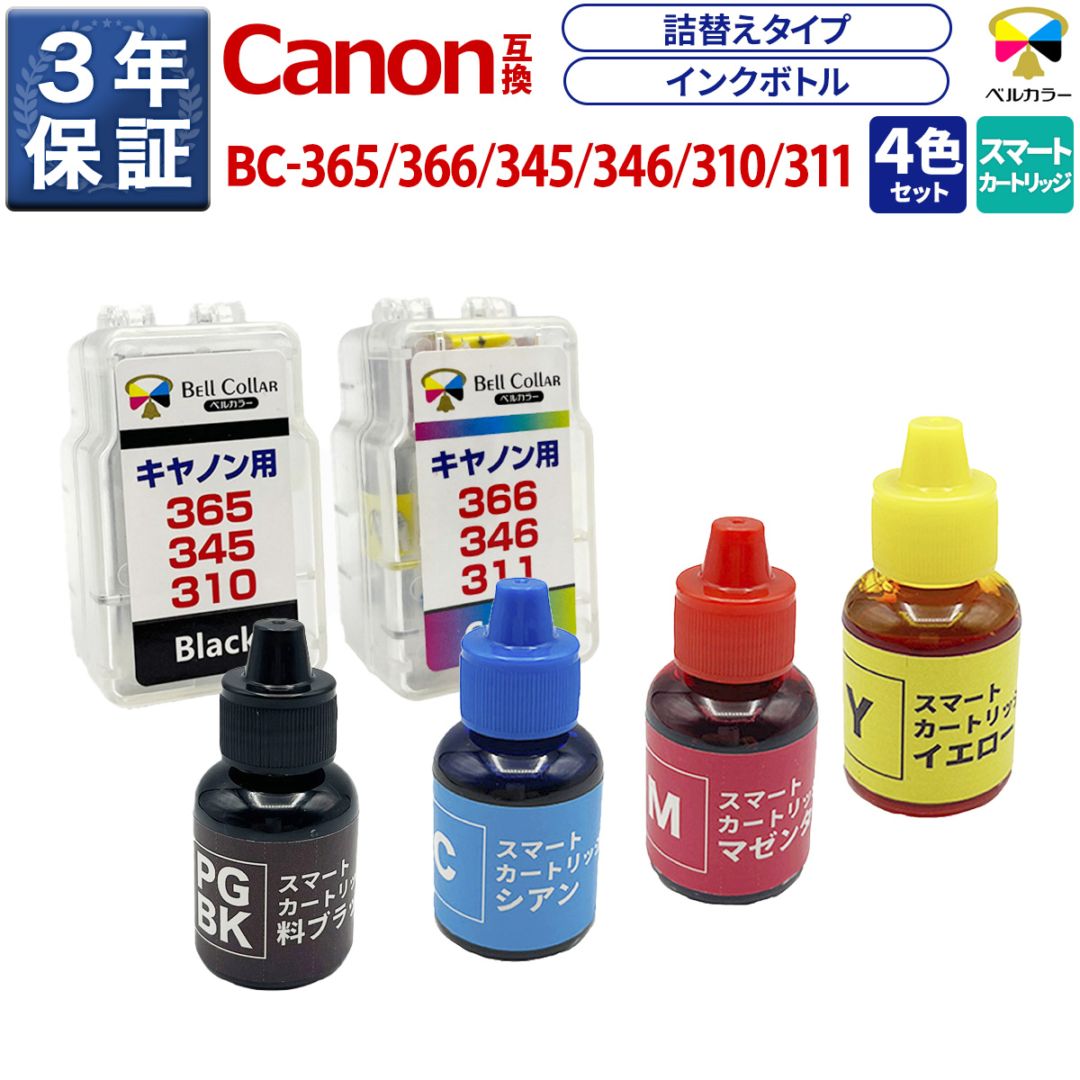 BC-365 / BC-345 キヤノン Canon PIXUS TS3530 / TS3330など 対応 詰め替えインク スマートカートリッジ 顔料ブラック+カラーセット 3年保証 ベルカラー製