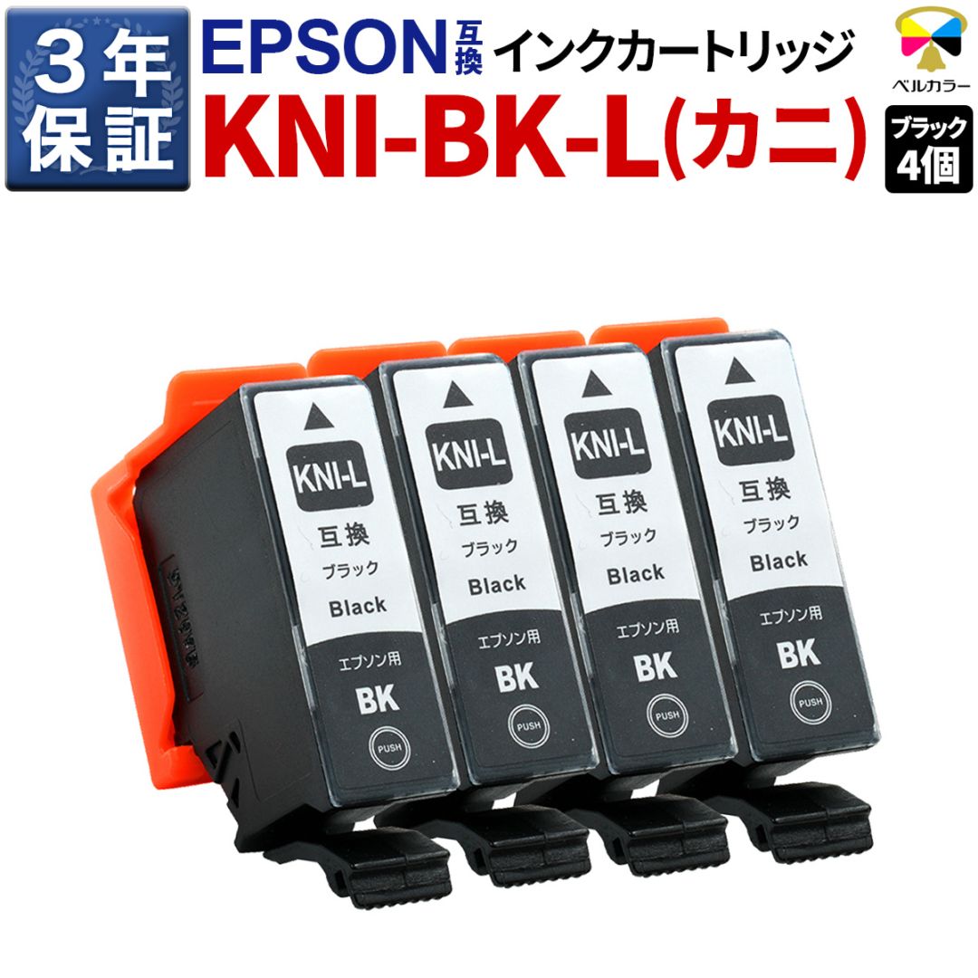 3年保証 カニ KNI-BK-L 大容量 互換インクカートリッジ エプソン 用 EP-887AB EP-887AW EP-887AP 対応 ブラック 純正 併用 可能 4個セット ベルカラー