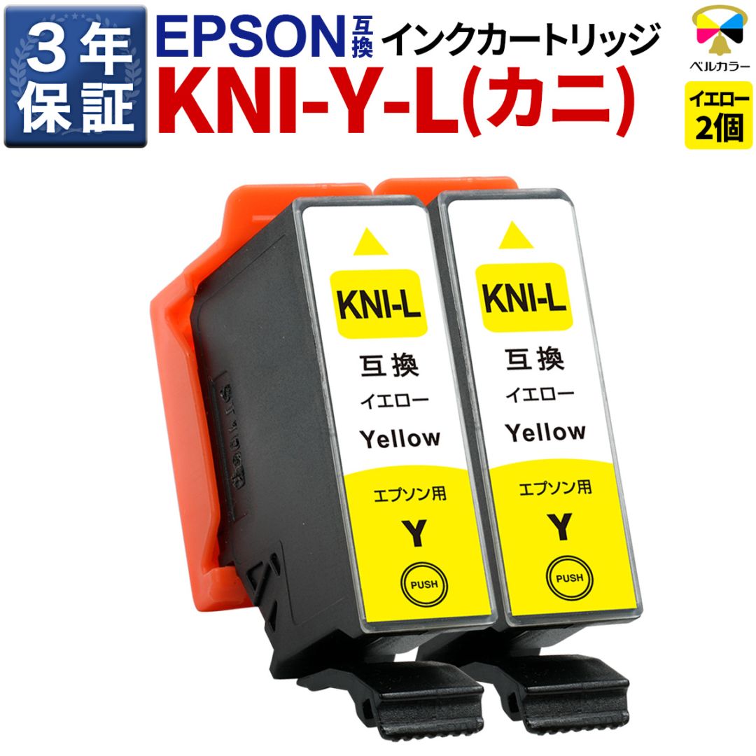 3年保証 カニ KNI-Y-L 大容量 互換インクカートリッジ エプソン 用 EP-887AB EP-887AW EP-887AP 対応 イエロー 純正 併用 可能 2個セット ベルカラー