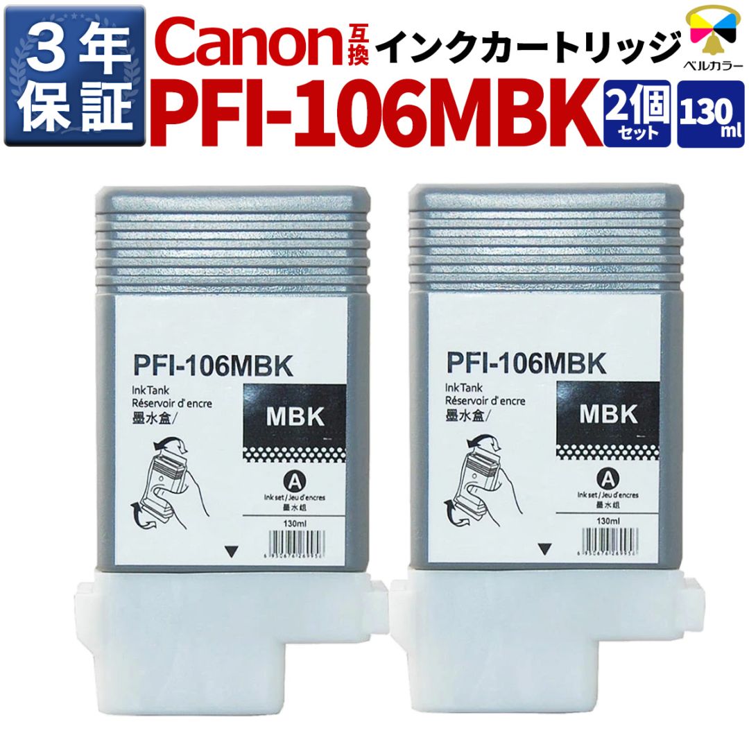 PFI-106MBK 130ml 互換 インクタンク キヤノン Canon 用 iPF6300S iPF6300 他 対応 ブラック インクカートリッジ 2個パック