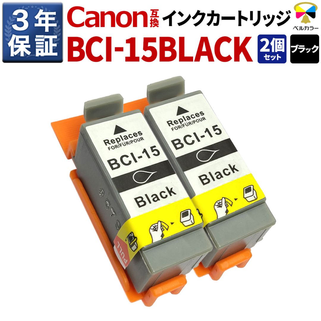 BCI-15BLACK キヤノン Canon PIXUS 80i / PIXUS 50iなど 対応 互換インクカートリッジ ブラック 2個セット 3年保証 ベルカラー製