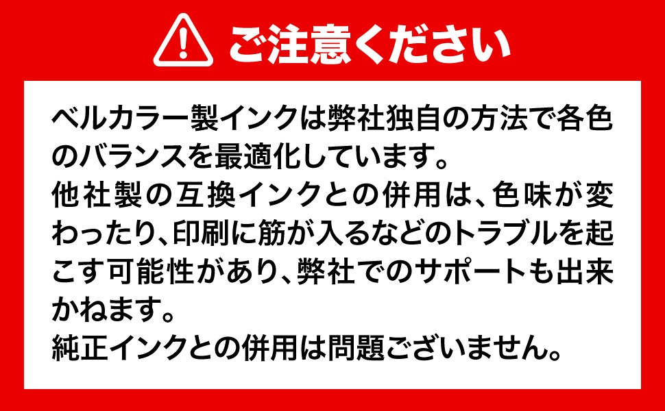 [ご注意:異なるメーカーインクとの併用は避けてください]
