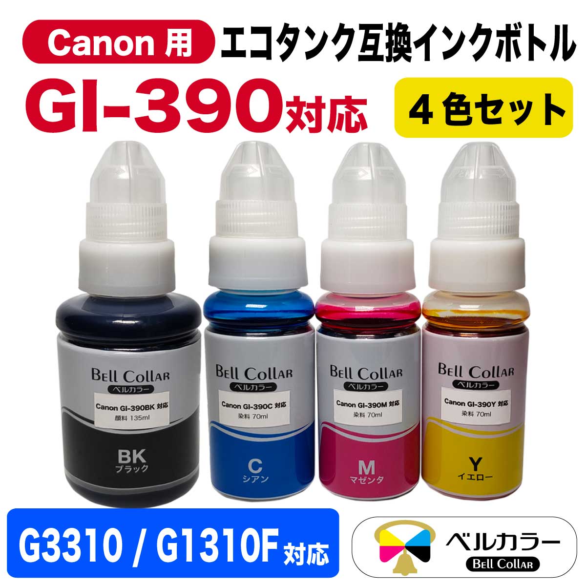 GI-390 キヤノン Canon G3310 / G1310など 対応 互換インクボトル エコタンク用 4色セット 3年保証 ベルカラー製