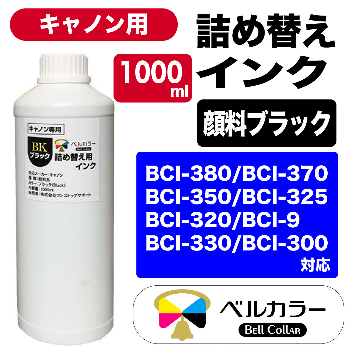 BCI-330 / BCI-380 XL キヤノン Canon TS8530 / TS7530など 対応 互換インク カートリッジ インク1000ml ブラック 単品 顔料 純正比約65倍 3年保証 ベルカラー製
