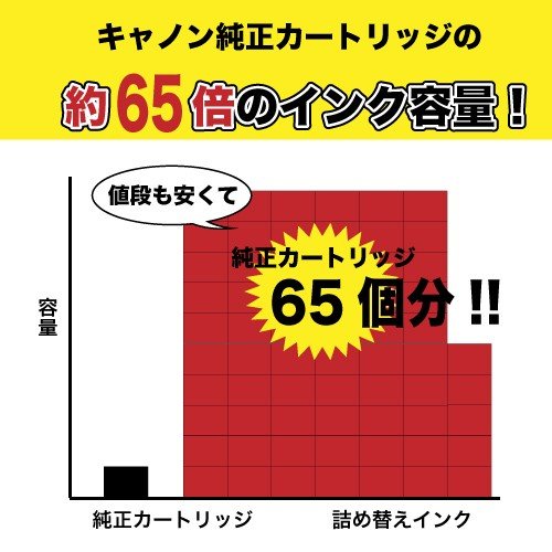 ・純正インクの約65回分のインク容量で、大幅なコスト削減が可能です。