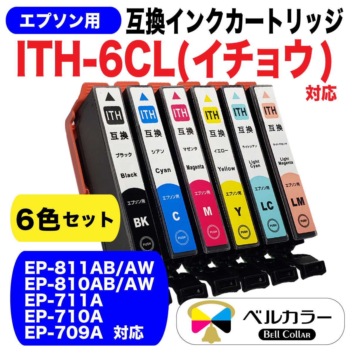 イチョウ ITH-6CL エプソン Epson EP-811AB / EP-811AWなど 対応 互換インクカートリッジ 6色セット 3年保証 ベルカラー製