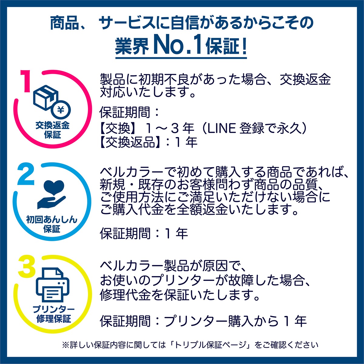 ※本ページからご購入いただきましたベルカラー製品を保証いたしますので、ご注文番号とともに弊社サポートにご連絡ください。