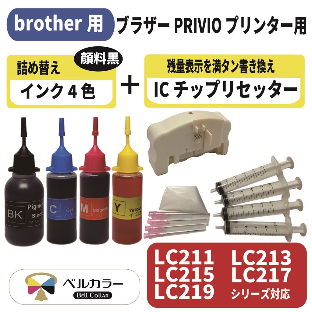 LC211/213/LC215/LC217/LC219 XL ブラザー BROTHER DCP-J968N/ DCP-J963Nなど 対応 ICチップリセッター 詰め替え用互換インク 4色セット 純正比約3倍※LC211の場合