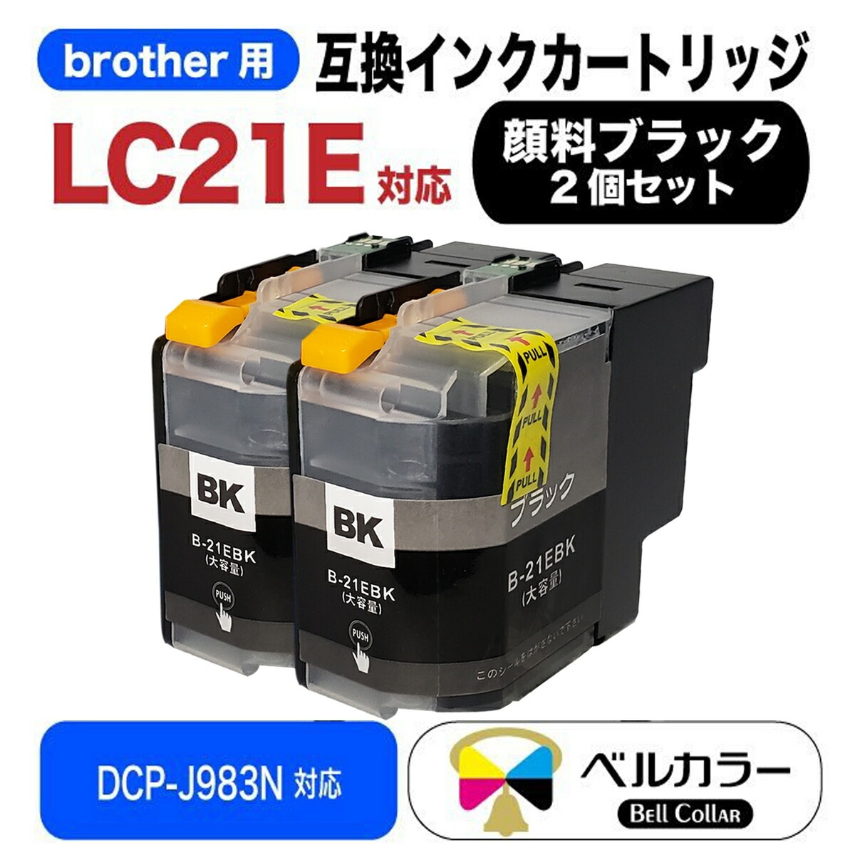 LC21E XL ブラザー BROTHER DCP-J983N 互換インクカートリッジ 残量表示チップ搭載 顔料ブラック2個セット 3年保証 ベルカラー製