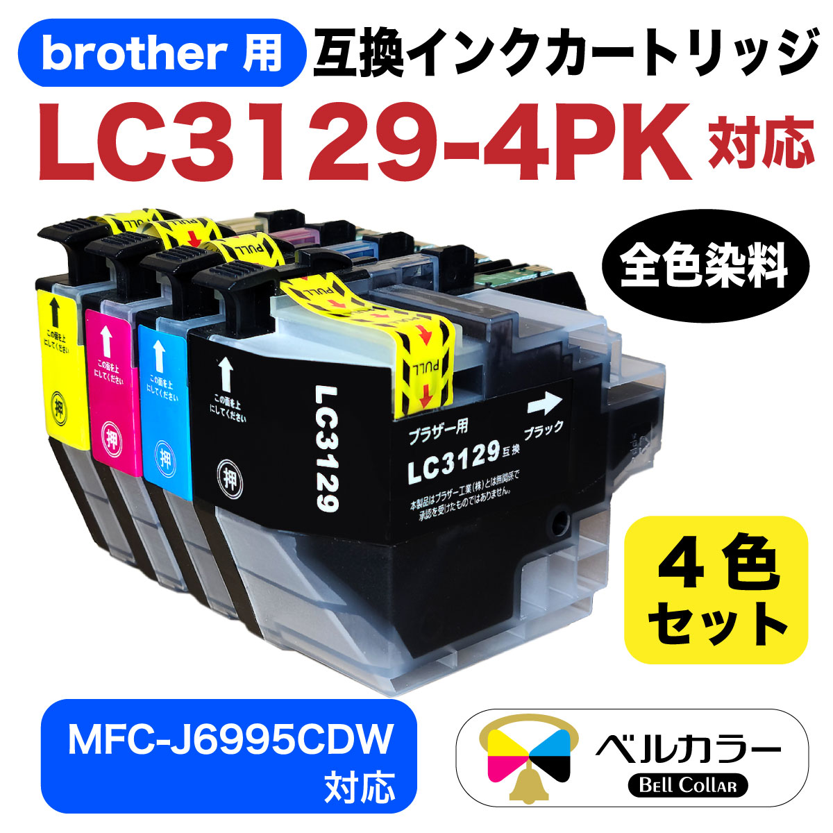 LC3129 ブラザー BROTHER MFC-J6995CDW 互換インクカートリッジ 残量表示チップ搭載 全色染料 BK/C/M/Y 4色セット 3年保証 ベルカラー製