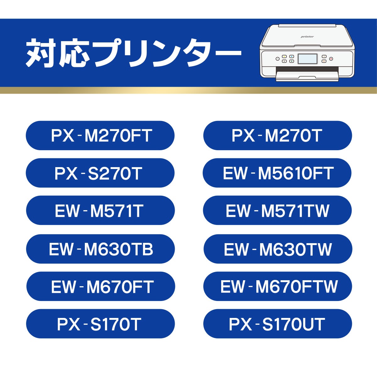 | 対応プリンター型番 | PX-M270FT / PX-M270T / PX-S270T / EW-M5610FT / EW-M571T / EW-M571TW / EW-M630TB / EW-M630TW / EW-M670FT / EW-M670FTW / PX-S170T / PX-S170UT /EW-M634T / PX-M161TP/S161T |