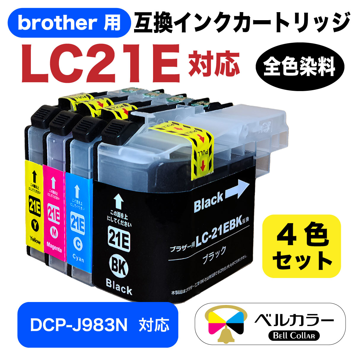 LC21E ブラザー BROTHER DCP-J983N 互換インクカートリッジ 全色染料 BK/C/M/Y 4色セット 3年保証 ベルカラー製