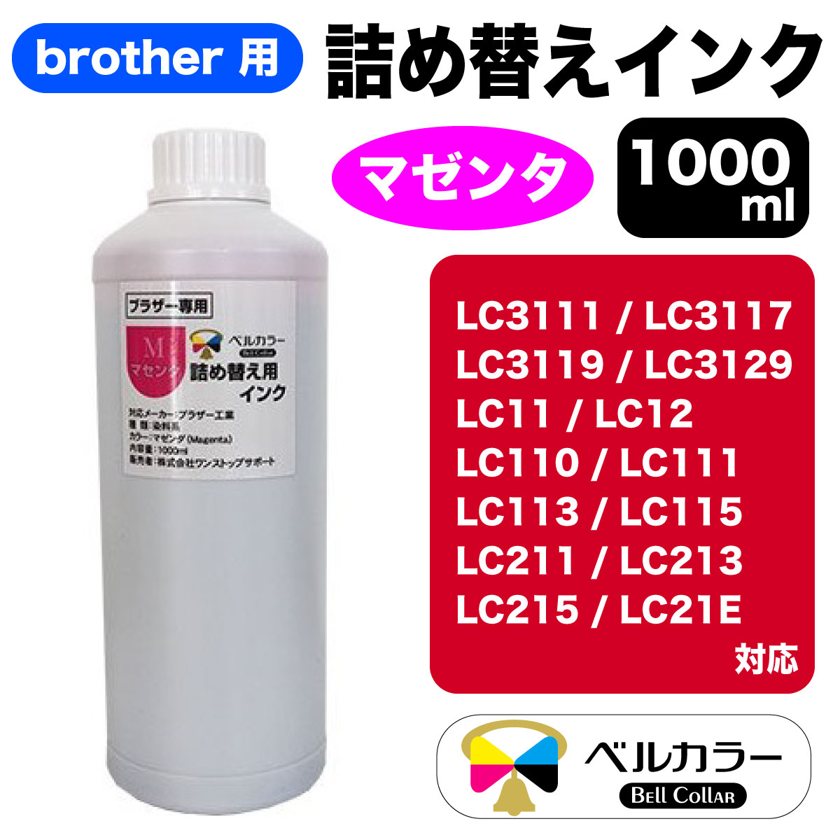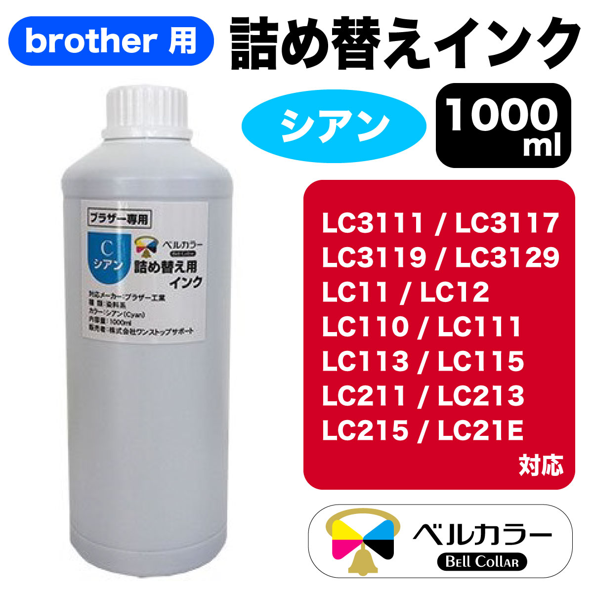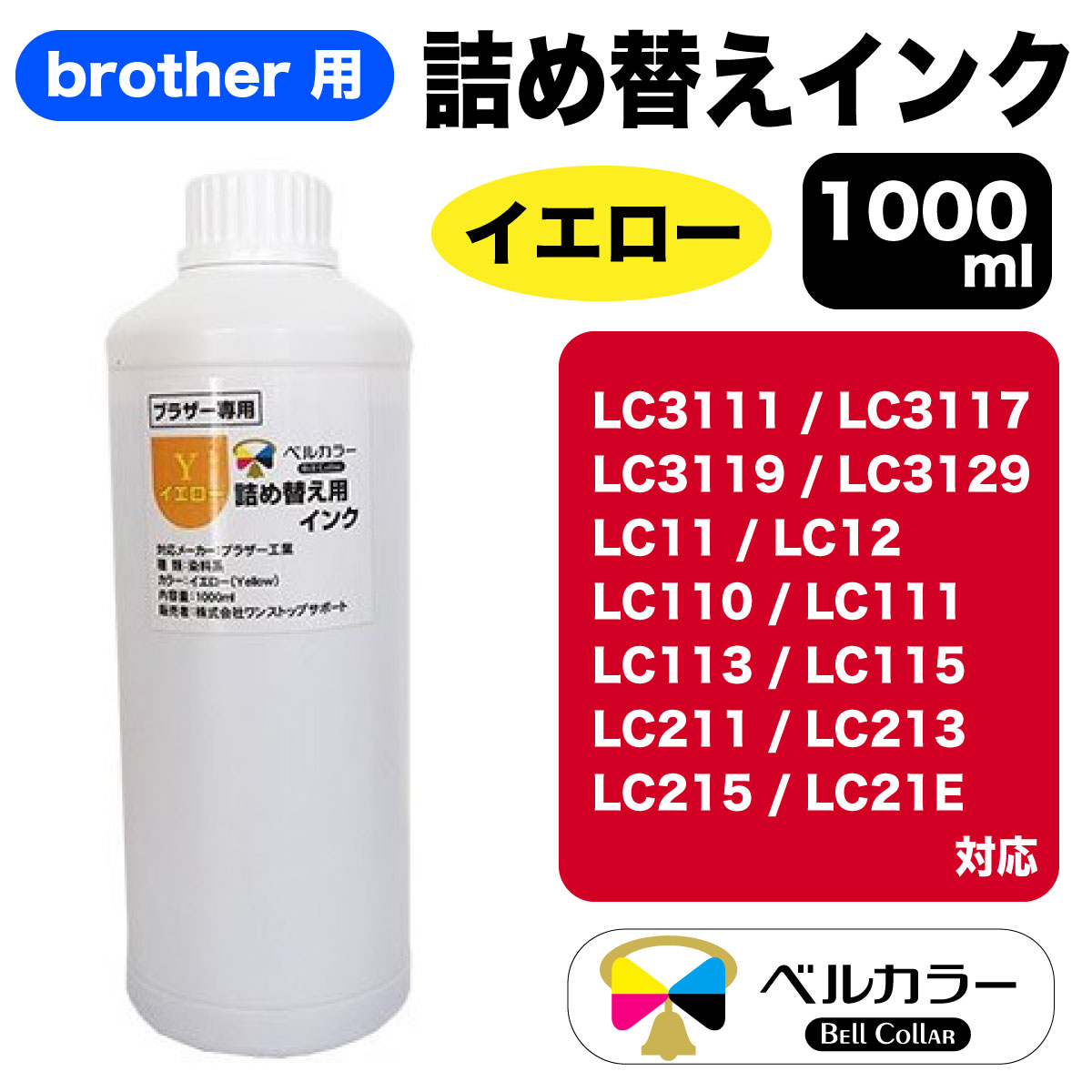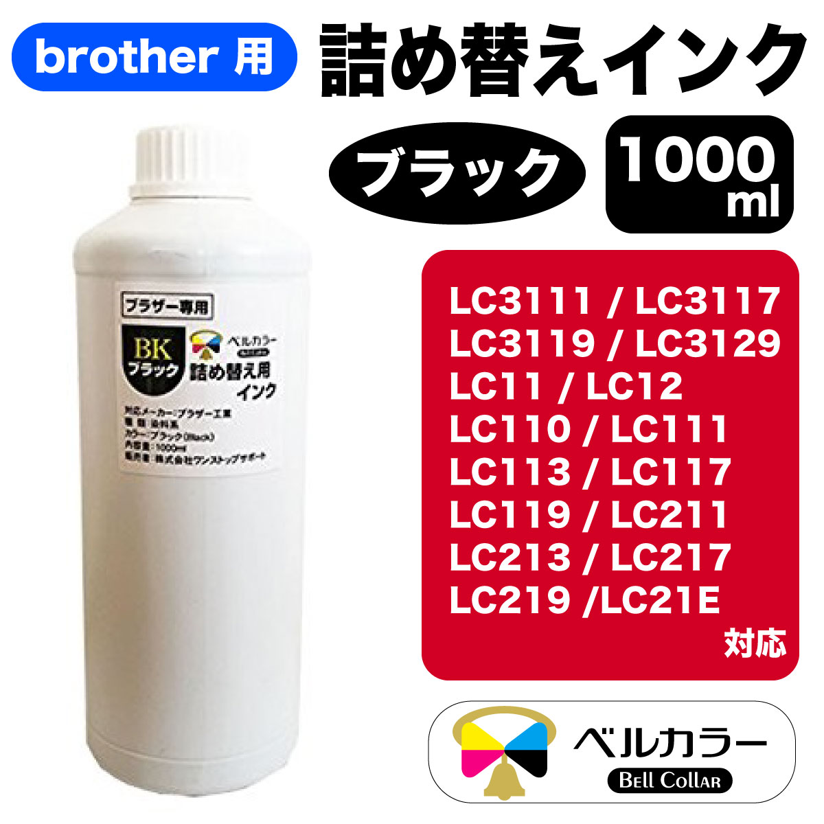 LC11 / LC12 ブラザー BROTHER MFC-6890CN / MFC-6490CNなど 対応 互換 詰め替えインク ブラック染料 1000ml単品 詰め替え器具一式 3年保証 ベルカラー製