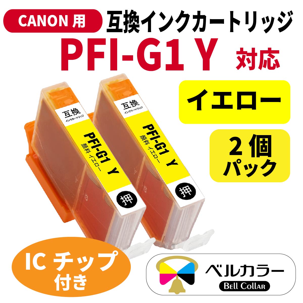 キヤノン PFI-G1シリーズ対応の互換インクカートリッジ イエロー2本セット です。