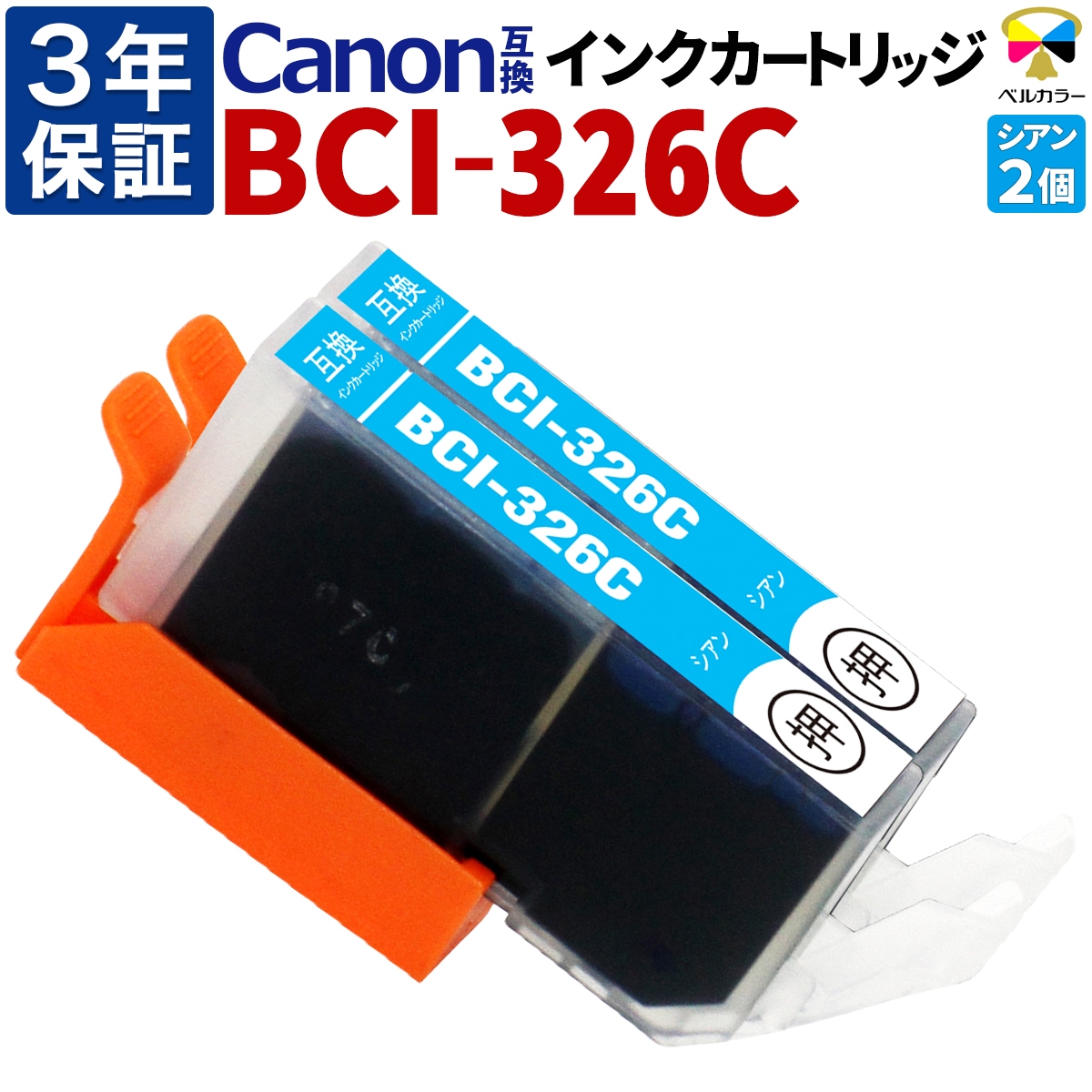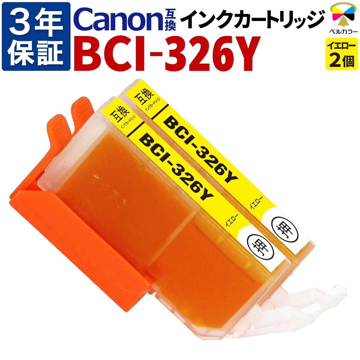 Canon(キヤノン) BCI-326対応の互換インクカートリッジ 単色2個パックです。ブラック/シアン/マゼンタ/イエロー/グレーよりカラーをお選びください。